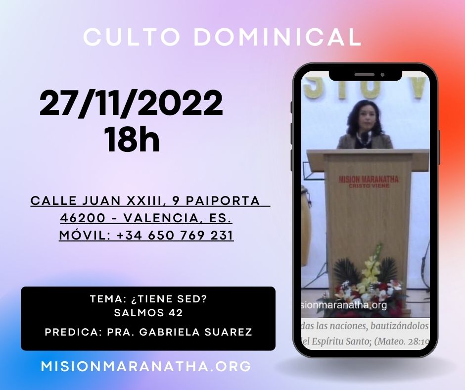Domingo, 27 de Noviembre a las 18h en directo desde www.misionmaranatha.org/canaldirecto/ 27 noviembre, 2022 Desactivado Por Misión Maranatha Culto Dominical Misión Maranatha 20-11-2022 Paiporta (Valencia) España. Culto Dominical Misión Maranatha 27-11-2022 Paiporta (Valencia) España.